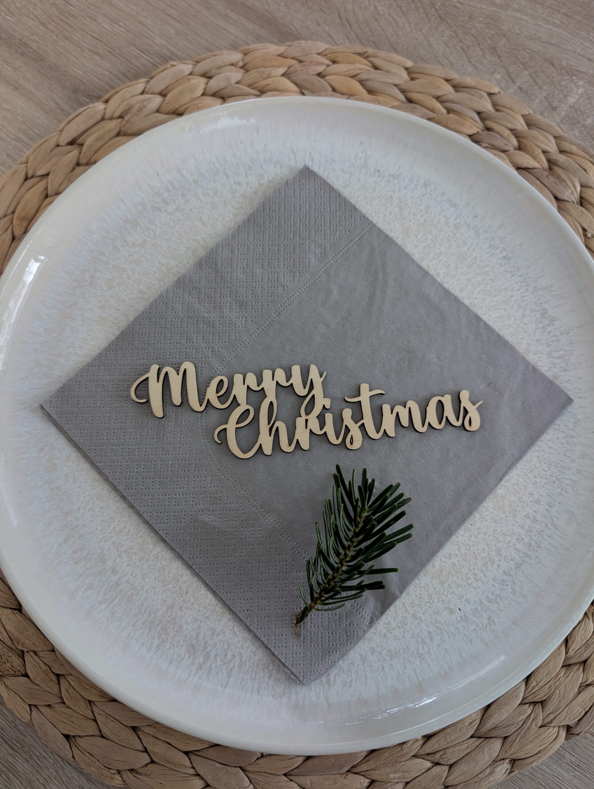 Setzen Sie stilvolle Akzente auf Ihrer Weihnachts- oder Festtafel! Diese feinen Schriftzüge in eleganter Schreibschrift sind die ideale Deko für die liegende Verwendung auf Tellern, Tischen, in weihnachtlichen Gestecken oder auf Geschenkkörben.